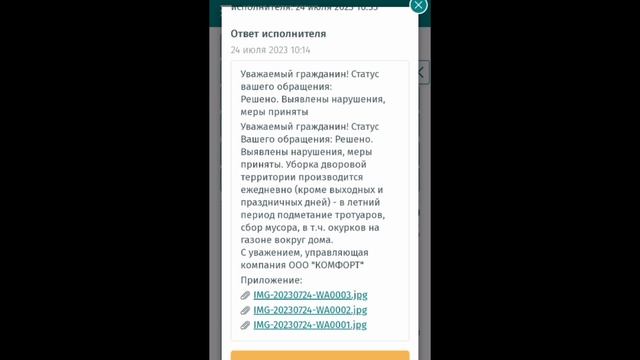 Ответ от ЕДС МО по окуркам на придомовой территории