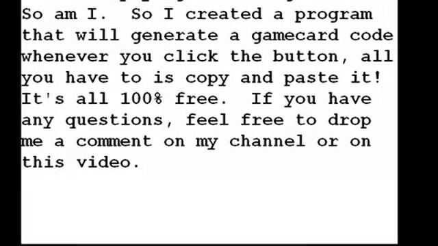 http://goo.gl/xWeYw 10/9/08 UPDATE: NEW PROGRAM! GUARANTEED TO WORK! This program will generate WoW gamecard codes for you to use. You might have to try a few times to get a working one. To Use: 1: Download the program from link above 2: Save it to your desktop, or any other folder 3: Run the program and click generate to make a gamecard code. If you can't get a code using generate, then use random.