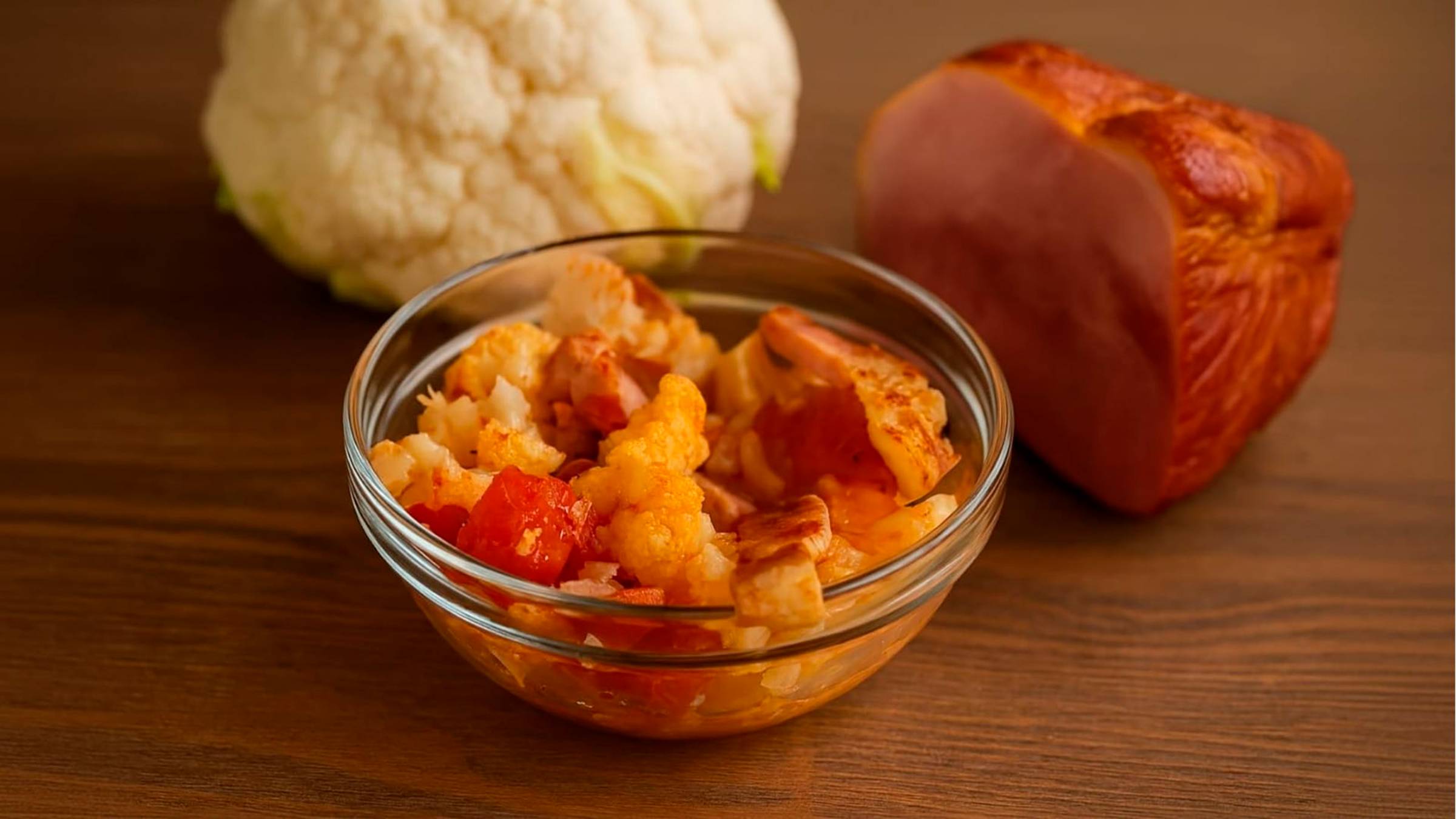 Дуэт невиданной сочности на сковороде: цветная капуста и помидор.
