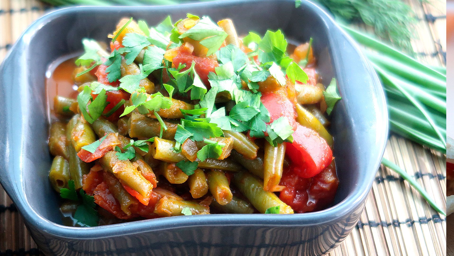 Стручковая фасоль тушенная с помидорами по-гречески