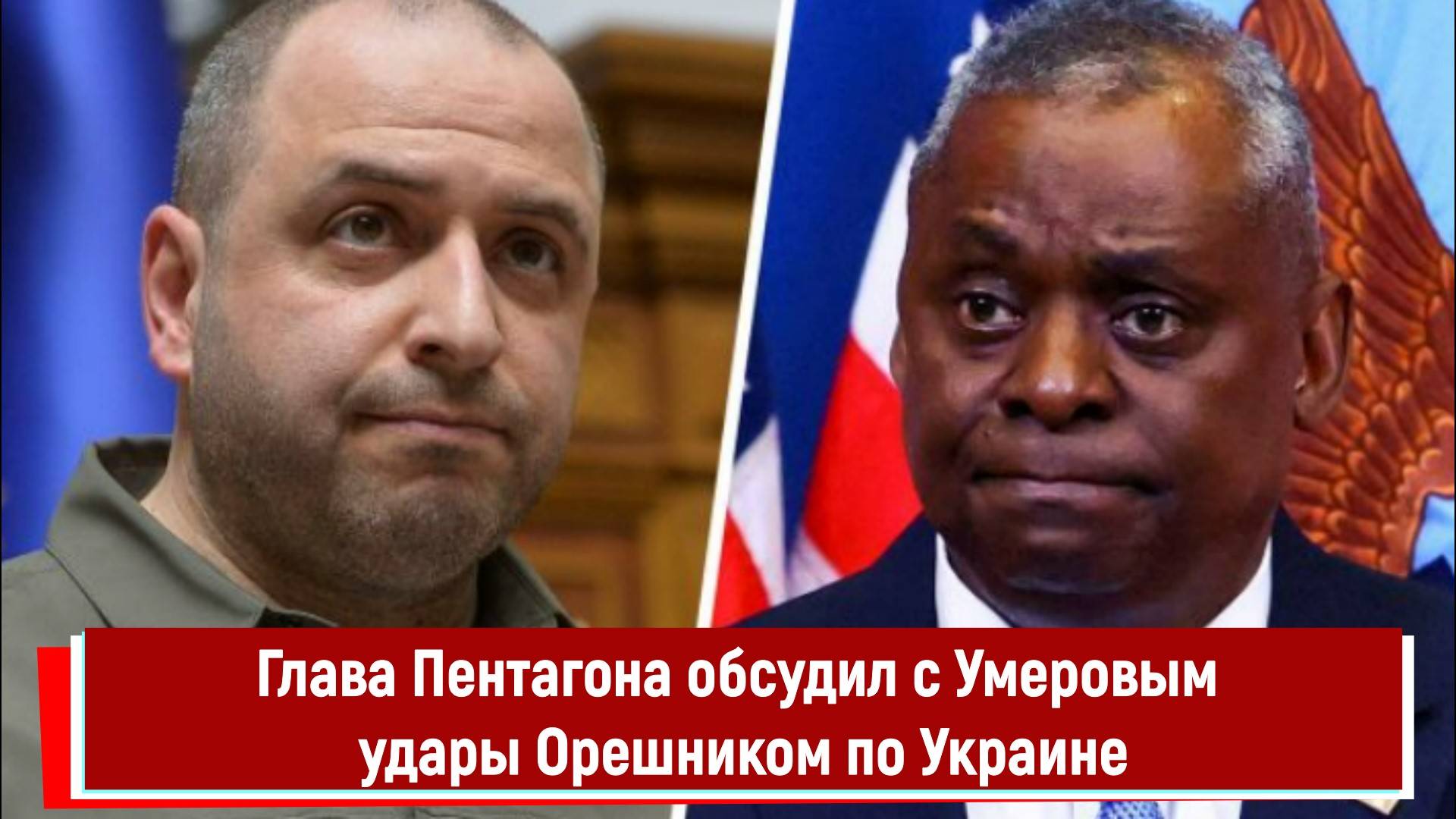 Глава Пентагона обсудил с Умеровым удары Орешником по Украине. Путин пригрозил нанести ракетный удар Орешником по центрам принятия решений в Киеве. Ллойд Остин обсудил с Умеровым новые угрозы, озвученные Путиным. Под российский ракетный удар могут попасть правительственные здания в Киеве, а также американское посольство