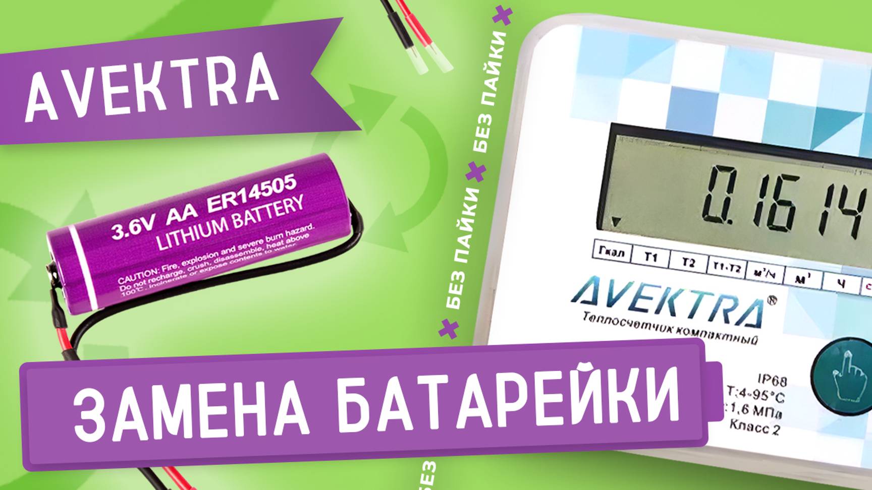 Замена батарейки в счетчике тепла AVEKTRA без пайки