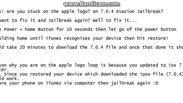 How To Fix Stuck On Apple Logo For Evasi0n 7.0.4 Jailbreak! (SHORT VIDEO)