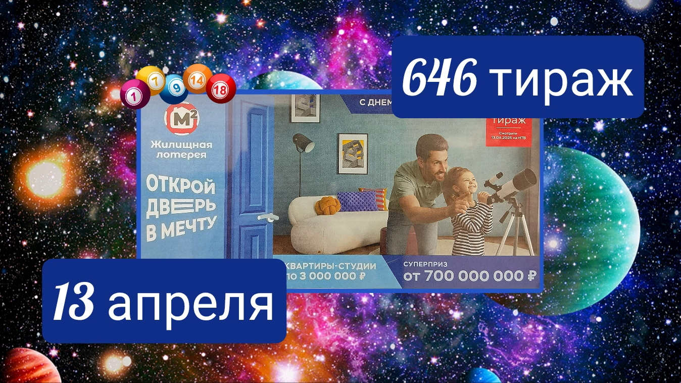 ЖИЛИЩНАЯ ЛОТЕРЕЯ 646 ТИРАЖ от 13 апреля 2025 года. Проверить тиражный билет СТОЛОТО.