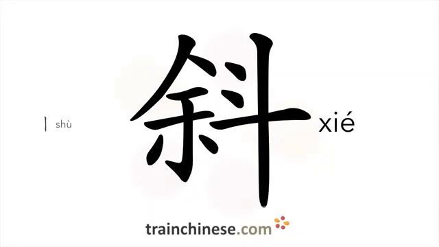 斜 (xié) slanting; inclined; oblique; beveled, tilted