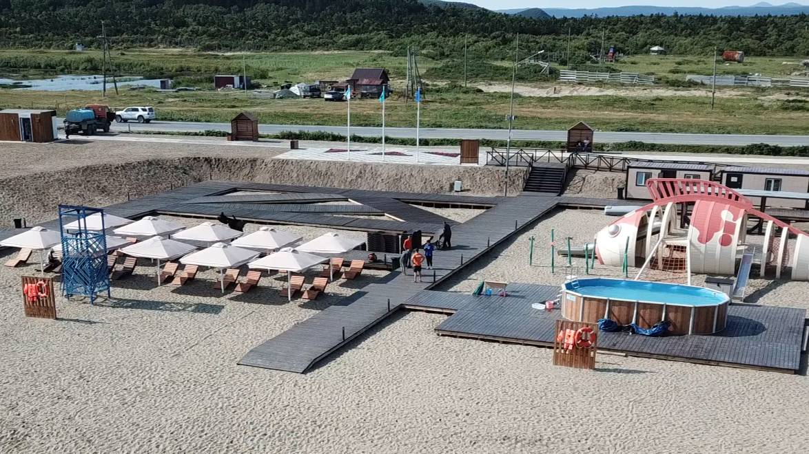 Пляж на берегу моря в Охотском