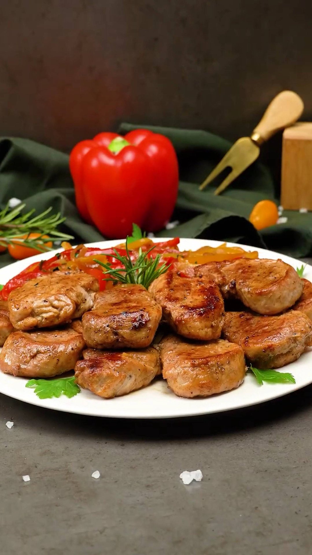 Этому рецепту свиной корейки позавидует любой повар! Ингредиенты: свиная вырезка: 2 шт соль: 7 г черный перец: 1 г сладкая паприка : 2 г соль: 7 г черный перец: 1 г сладкая паприка : 2 г растительное масло: 20 мл сливочное масло: 30 г сушеный тимьян: 2 г розмарин : 2 г чеснок : 10 г лук: 2 шт сладкий перец, красный: 1 шт сладкий перец, желтый: 1 шт соль: 3 г черный перец: 1 г чеснок : 15 г соевый соус : 20 мл петрушка : 10 г НА СРЕДНИЙ ОГОНЬ: 10 МИН Текст атрибуции Royalty Free Music: Bensound.com License code: WZ7EJDWVWX3QXZDQ