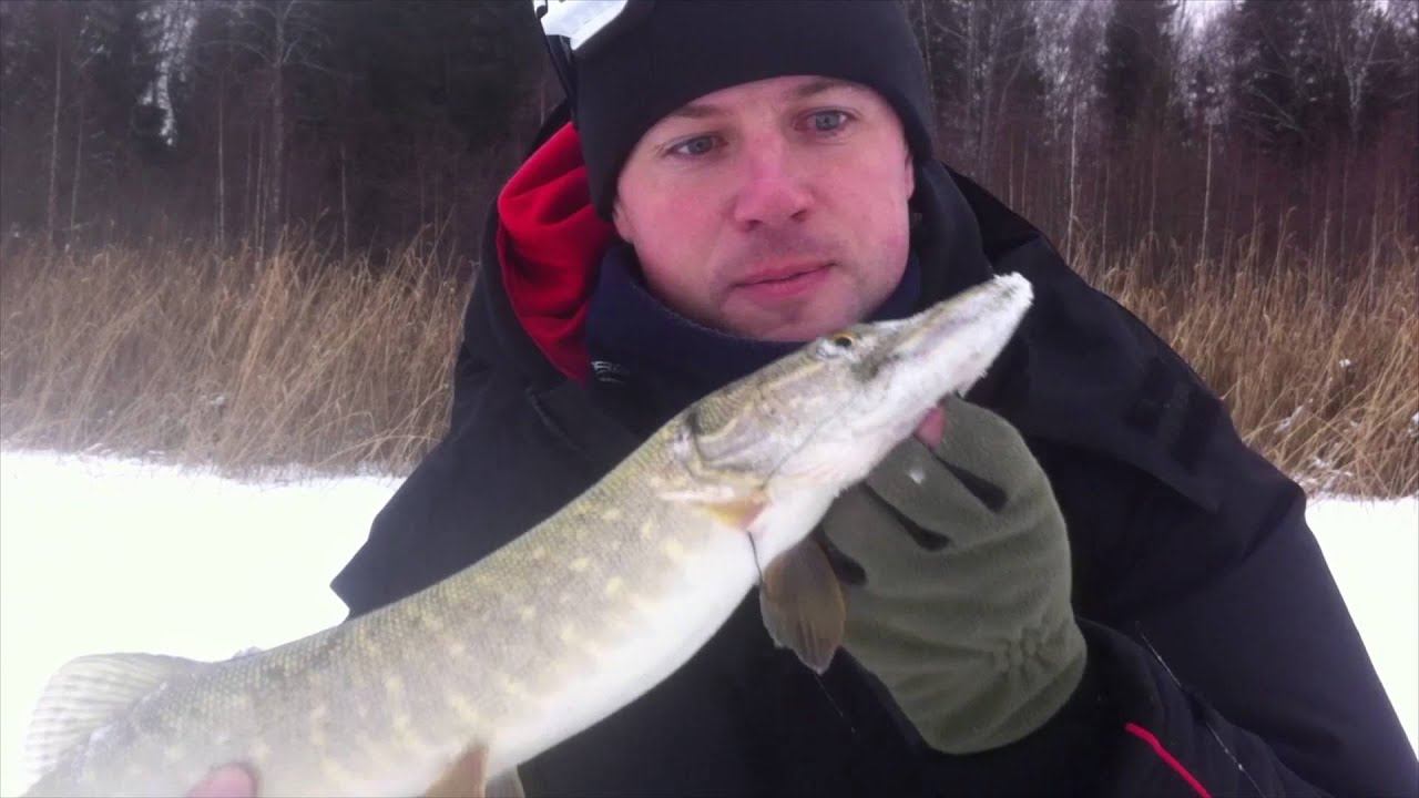 Ловля щуки со льда на жерлицы. Подводные съемки. Взгляд из подо льда. Живец под водой. Щука прошла мимо.