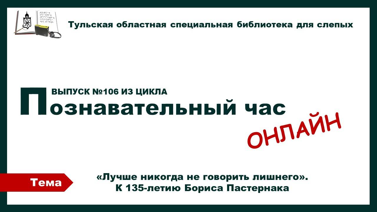 Очередной выпуск программы Познавательный час онлайн посвящен 135-летию со дня рождения выдающегося русского поэта и писателя Бориса Пастернака.