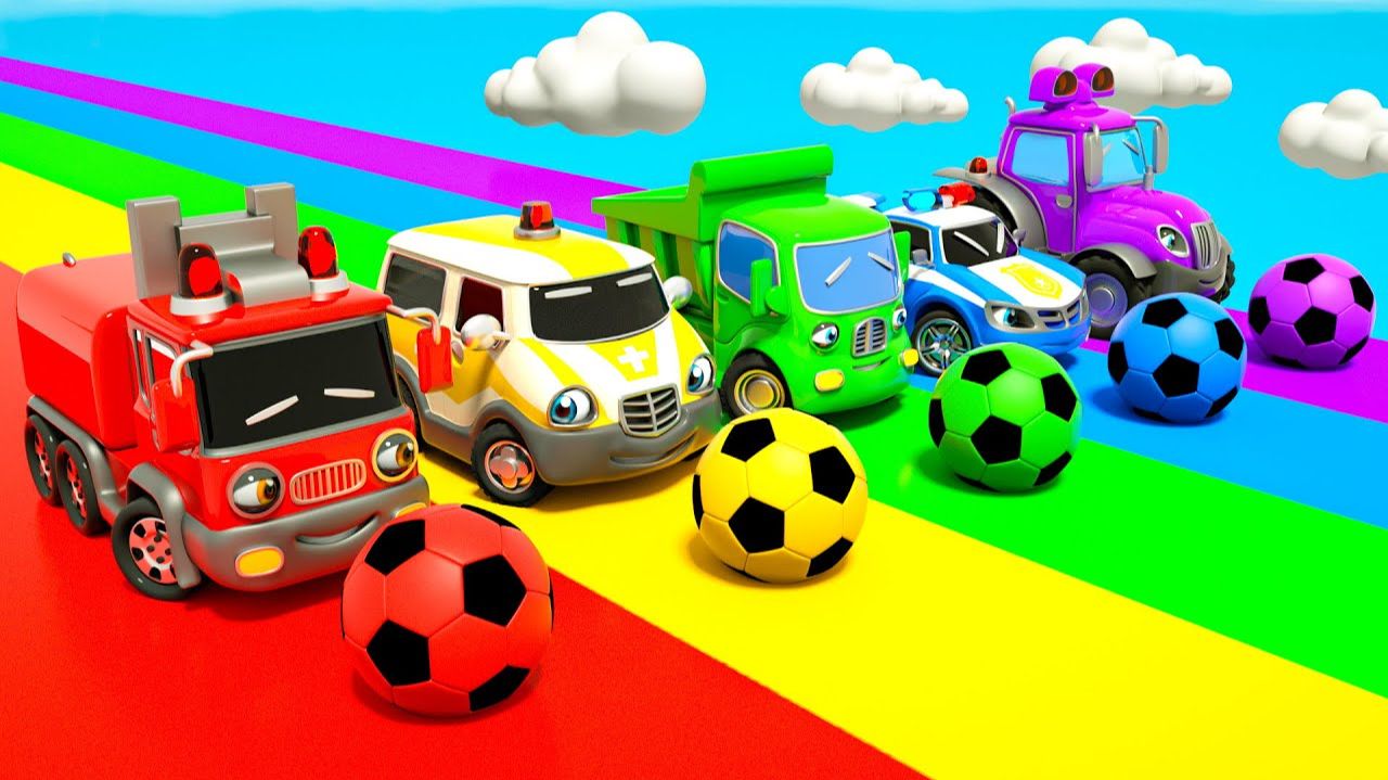 Детские мультики. Лучшие мультфильмы. Мультики про машинки. Прыгай в бассейн с футбольным мячом.