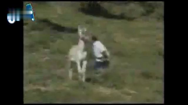 Осел нападает на человека