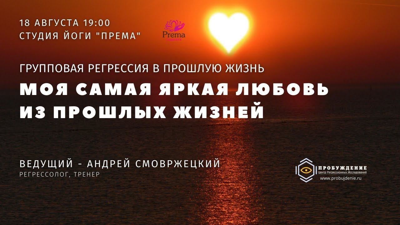 Что будет: На двухчасовой встрече у вас будет возможность ознакомиться с регрессией как с методикой работы с памятью человека, задать интересующие вас вопросы опытному регрессологу, а также пройти собственную практику – трансовое медитативное погружение в одну из своих прошлых жизней в групповом формате и поделиться своими впечатлениями в группе (по желанию). Практика проходит в положении лежа (как в Шавасане). Вы выполняете инструкции преподавателя по расслаблению тела, затем погружаетесь в медитативное состояние. Планируется периодическое проведение групповых трансовых погружений, регрессий для участников с любым уровнем подготовки. Встречи предусматривают возможность погружения в наиболее актуальные прошлые воплощения для проработки запросов участников. По опыту регрессантов, повторное прохождение практики даёт большую глубину транса и возможность ознакомления с новыми страницами своей памяти в трёх областях: собственная память человека настоящей жизни (от момента зачатия, подавляющему большинству людей доступна в том числе перинатальная память и память детства и юности), память прошлых жизней души и память рода. https://probujdenie.ru/gruppovye-regressii/ - все подробности и запись по этой ссылке центра "Пробуждение"