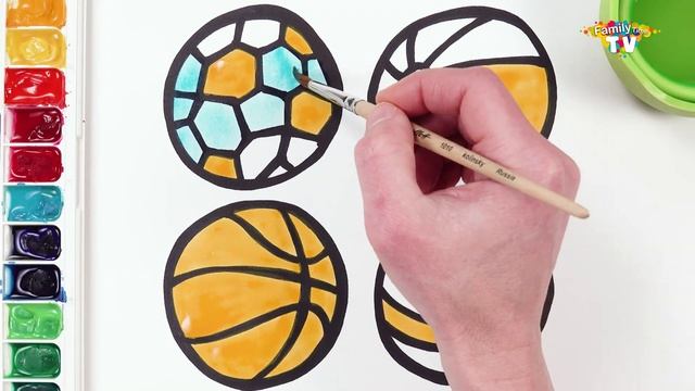 Рисования 4 видов мячей! Рисование и раскраски для детей! советы по рисованию для малышей