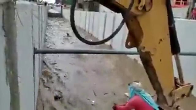 Строитель спас собаку с помощью экскаватора.