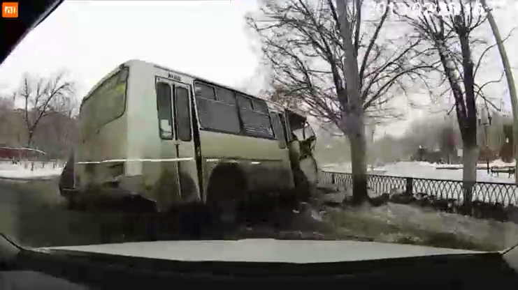 25.02.2018. ДТП в Оренбурге. Иномарка подрезала автобус. #дтп #авария #въехал #автобус #оренбург