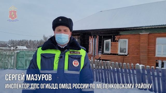 Около двух часов ночи сотрудники ДПС ОГИБДД ОМВД России по Меленковскому району старший лейтенант полиции Александр Сидоров и младший лейтенант полиции Сергей Мазуров находились на маршруте патрулирования в районе деревни Кесово Владимирской области. Полицейские заметили, что из частного дома на центральной улице валит дым. Когда они подъехали к зданию, к ним подбежала местная жительница и рассказала, что в доме, где началось возгорание, проживает 74-летняя пенсионерка. Дверь в дом, как пояснила женщина, закрыта. О случившемся сотрудники полиции незамедлительно сообщили в дежурную часть и экстренные службы. Поскольку открыть входную дверь автоинспекторы не смогли, то вместе с прибывшими на помощь двумя местными жителями они её взломали. К этому времени огонь уже перекинулся на внешнюю обшивку дома. Зайдя в сильно задымлённое помещение, стражи правопорядка увидели на полу пожилую женщину. Сотрудники полиции вынесли пострадавшую на улицу и посадили в патрульный автомобиль, чтобы женщина не замёрзла. Прибывшие сотрудники МЧС на месте оказали пенсионерке кислородную терапию и ликвидировали возгорание. Медработники госпитализировали 74-летнюю жительницу деревни в медицинское учреждение. Установлено, что пожар начался вследствие короткого замыкания, произошедшего из-за неисправности холодильника. Благодаря своевременной помощи сотрудников полиции трагический исход возгорания был предотвращён.