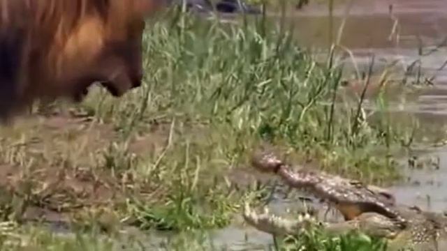 Лев против крокодила . lion vs alligator