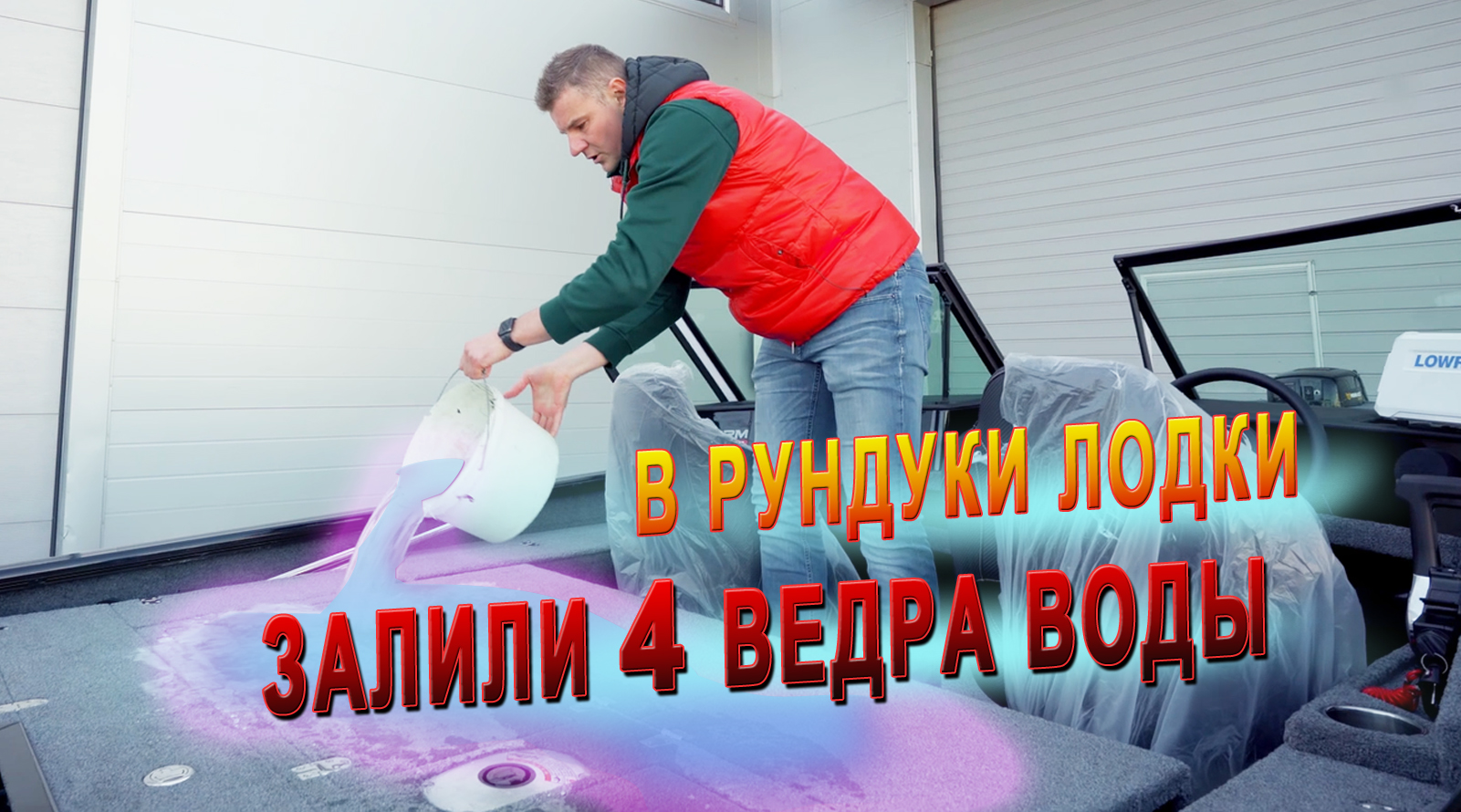 ???Проверка герметичности рундуков лодки на непопадание ?воды внутрь, залили 4 ведра воды