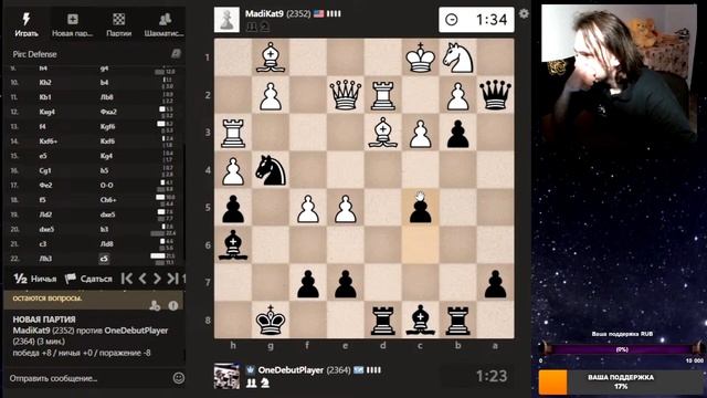 Друзья, всем привет. Партия со стрима, представляю вашему вниманию. Шахматы. Блиц 3+0 на chess.com. Если интересно, - подписывайтесь на канал, ставьте лайки, оставляйте комментарии. Поддержка через: DonationAlerts: https://www.donationalerts.com/r/onedebutplayer Бусти: https://boosty.to/onedebutplayer/donate Donatepay: https://new.donatepay.ru/@1272445 Или на карту в телеграм-канале: https://t.me/onedebutplayer/3