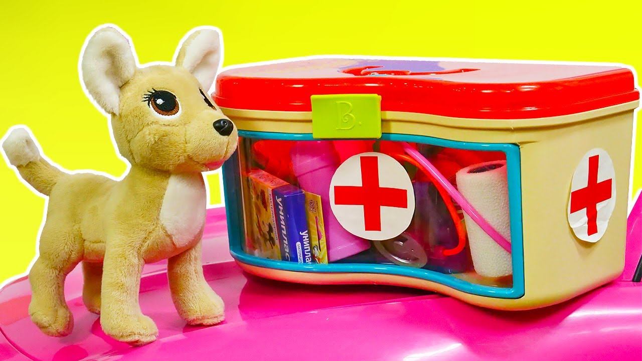 Видео для девочек Две Принцессы. Лечим собачку! Игры в доктора с игрушками