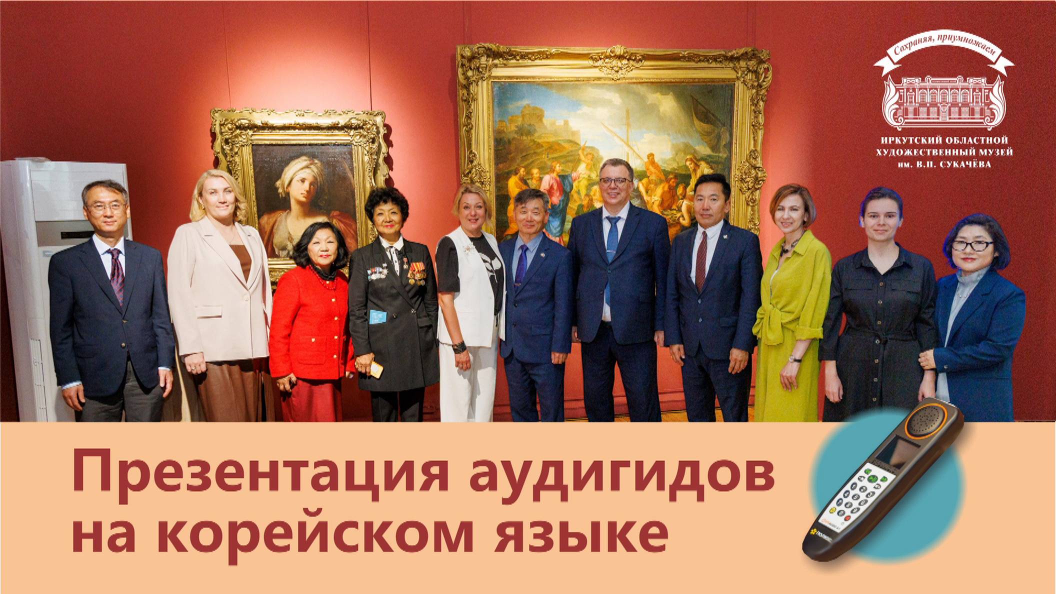 10 июня 2025 года в Главном здании Иркутского художественного музея (ул. Ленина, 5) состоялась презентация аудиогида на корейском языке. Отныне посетители, говорящие на корейском, могут самостоятельно ознакомиться с главными произведениями постоянной экспозиции музея с комментариями на родном языке. Проект реализован при поддержке Генерального консульства Республики Корея в Иркутске. В мероприятии приняли участие Генеральный консул Республики Корея Хан Сеонг Чин, консул Генерального консульства Республики Корея в Иркутске госпожа Чо Гын Хи, которая курирует вопросы культуры, исполняющий обязанности руководителя территориального органа — представителя МИД России в г. Иркутске Алексей Котельников. В Иркутской области официально проживает более 1,5 тыс. корейцев. Многие из них являются членами Центра корейской культуры, работающего в областном центре с 2006 года. Инициатором появления аудиогида в Иркутском художественном музее выступила консул Генерального консульства Республики Корея в Иркутске госпожа Чо Гын Хи, курирующая вопросы культурного взаимодействия. При содействии консульства был произведен качественный перевод русского аудиогида, а также выполнена запись аудиофайлов. Помимо аудиогидов, подготовлен путеводитель по музею и презентационное видео с субтитрами на корейском языке. Эти материалы будут полезны не только корейским студентам, обучающимся в Иркутске, но и всем представителям корейской диаспоры в регионе, а также туристам.