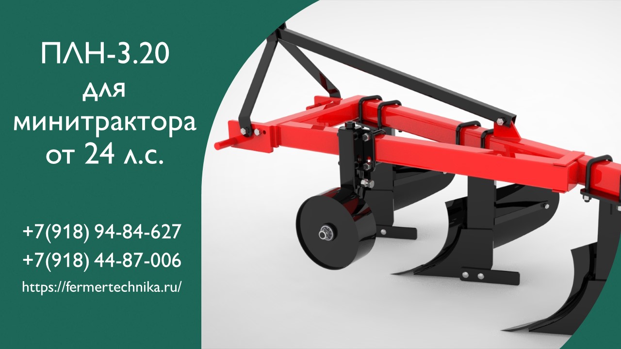 Плуг — орудие для вспашки плотной почвы, поднятия целины... В настоящее время в промышленно развитых странах плуг агрегатируется с трактором. Основная задача плуга — перевернуть верхний слой земли. Вспахивание уменьшает количество сорняков, разрыхляет и делает почву более мягкой и податливой, облегчает дальнейший посев. Плуг для минитрактора. Отлично работает с трактором т 25 и другими тракторами от 24 лс. Ширина обработки - 60 см Глубина обработки до 25см, регулируется опорным колесом. Стойка - 16мм Отвал - 4 мм Лемех термообработан Полевая доска на каждом корпусе Рама - 80\ 80\5 мм Вес - 130 кг Габариты - 170/90/90 см Ссылка для покупки: https://fermertechnika.ru/plugi/plug-trehkorpusnoj-3-20-dlya-minitraktora https://www.avito.ru/krasnodar/gruzoviki_i_spetstehnika/plug_kalinaagro_pln-3.2_2024_3319197619 Отдел продажи: +7(918)94-84-627, +7(918)44-87-006 https://fermertechnika.ru/ 353780, Краснодарский край, ст. Калининская ул. Степная 3»А» #плугдлят25, #плугдляминитрактора, #плугтрехкорпусной, #плугплн