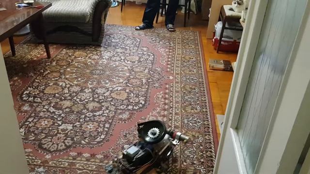 Radio-controlled trolley of motors for a 12-volt drill and a Chinese radio-controlled machine for 2$.