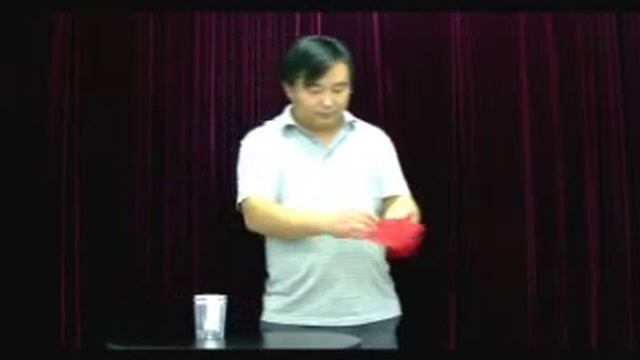 В пустом стакане появится красный платок с которым в дальнейшем можно показывать и другие фокусы.