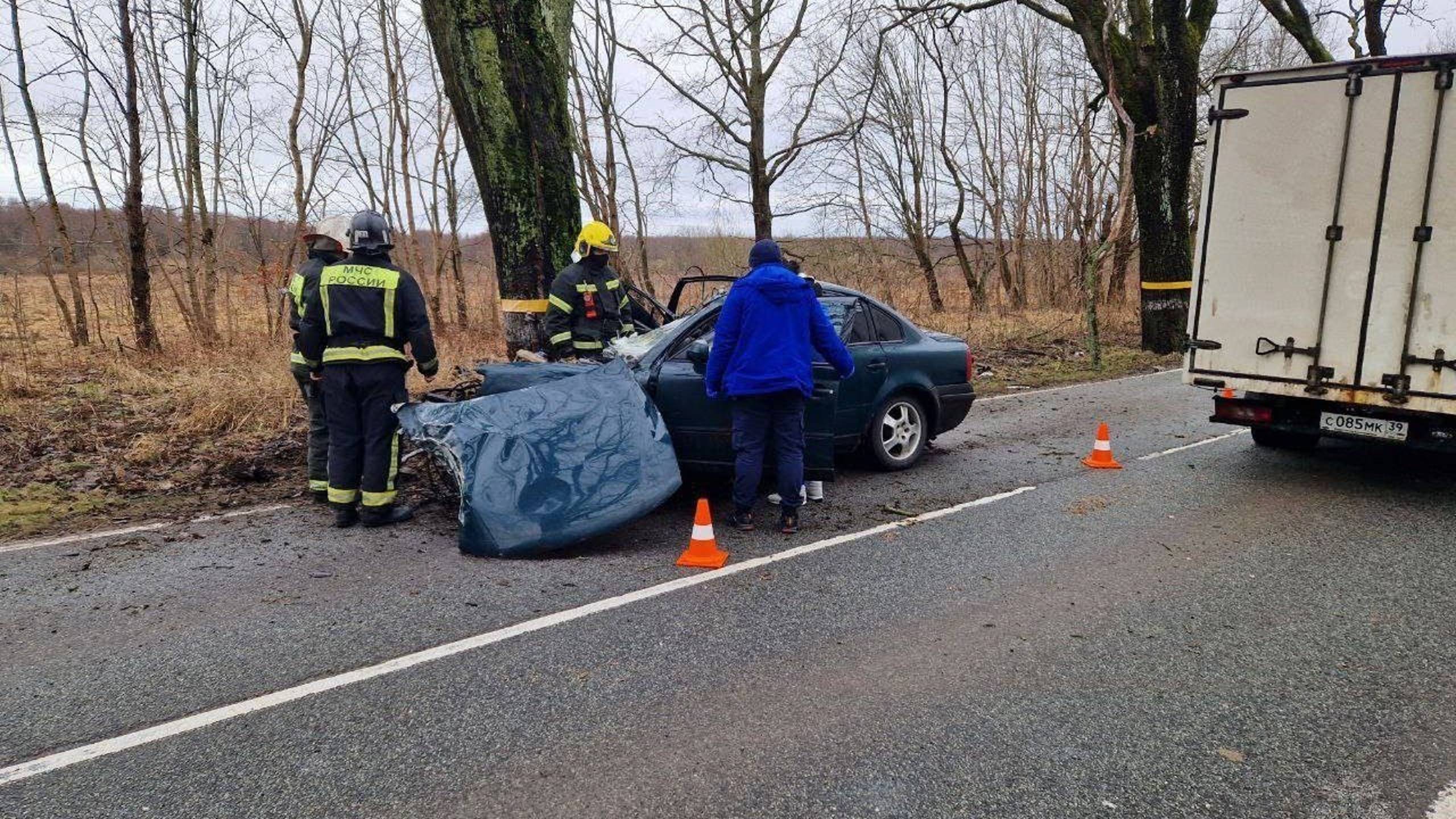 «Развернуло, и вынесло в дерево». Момент смертельного ДТП в Калининградской области.