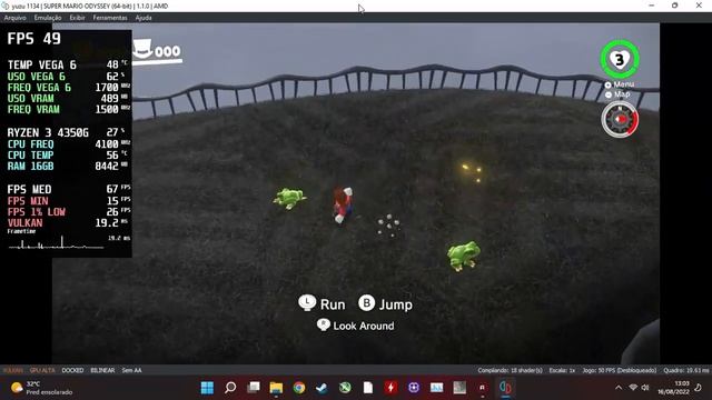 RYZEN 3 PRO 4350G -TESTE EMULADOR YUZU - Super Mario Odyssey