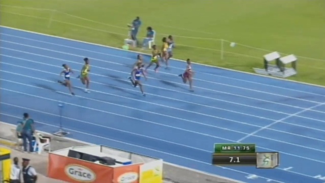 Finals 1 Sashieka Steele Holmwood 11.91 0.9 9 2 Gabrielle Matthews Hydel High 12.01 0.9 7 3 Bethany Bridge Edwin Allen High 12.31 0.9 6 4 Danae Nembhard St. Jago High 12.50 0.9 5 5 Shantae Williams St. Jago High 12.52 0.9 4 6 Omelia Stanley Hydel High 12.52 0.9 3 7 Janela Spencer Manchester High 12.71 0.9 2 8 Patreece Clarke Edwin Allen High 12.74 0.9 1