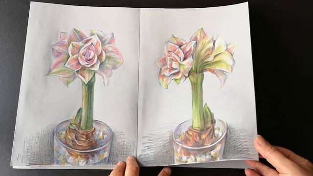 colored pensil drawings as artist book/ amaryllis