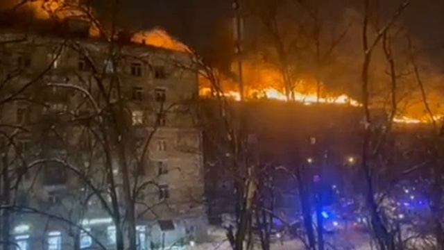 В Москве в районе метро «Аэропорт» загорелась крыша жилого дома.