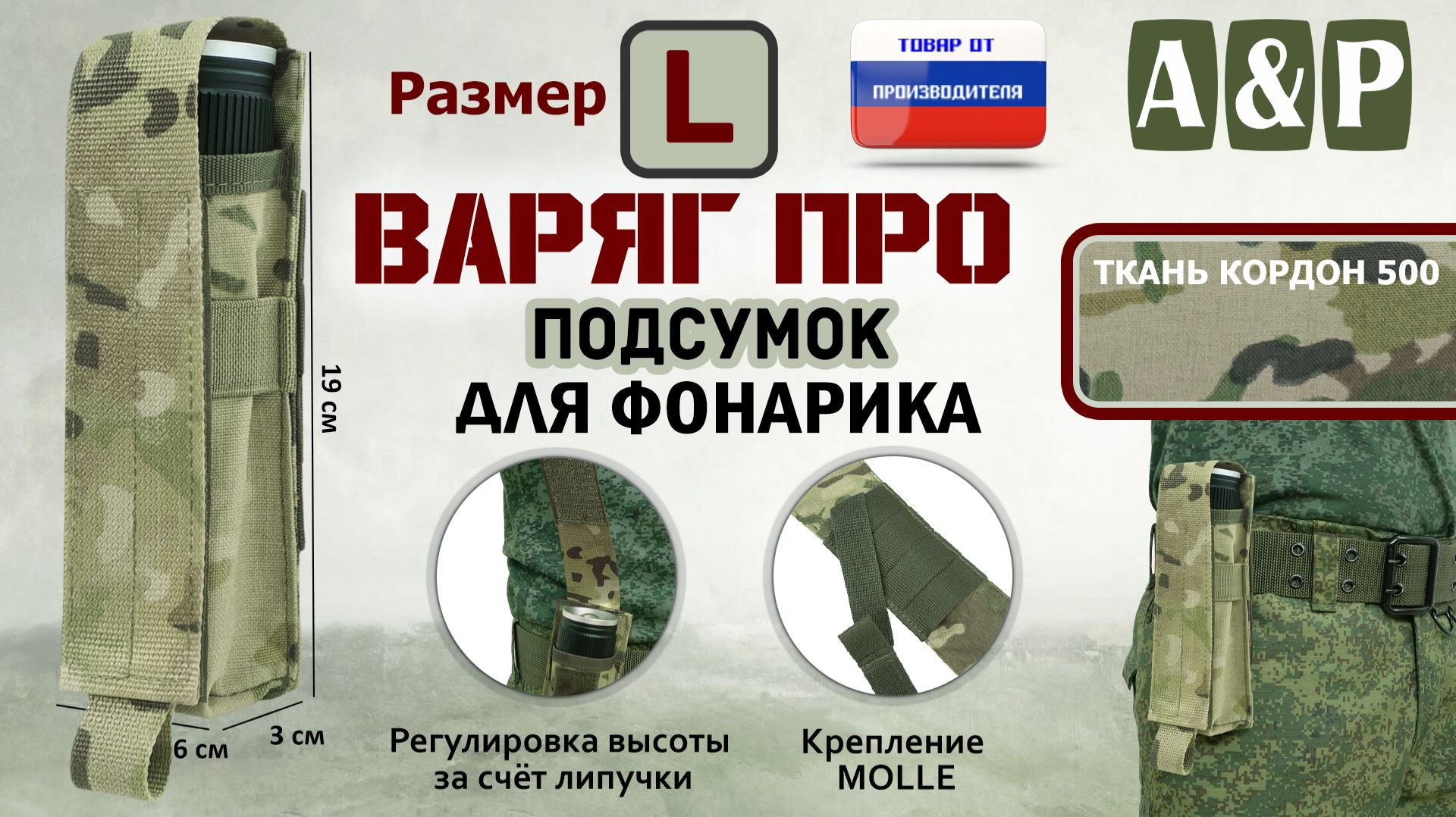 Заказать подсумок Варяг ПРО для фонарика, а также другие аксессуары можно на официальном сайте компании А&Р Групп: https://ap-group-llc.ru/ Возможность изготовления товаров по индивидуальным размерам и проектам. Гарантия на продукцию 1 год. Доставка осуществляется по всей России, а также в Казахстан и Беларусь. _______________________________________________________________________ Мы ВКонтакте: https://vk.com/apgroup Мы на Wildberries: https://www.wildberries.ru/seller/198927 Мы на Ozon: https://www.ozon.ru/brand/a-p-87358243/ Мы на Я.Маркете: https://market.yandex.ru/business--a-r-grupp-rossiiskii-proizvoditel-aksessuarov/864809