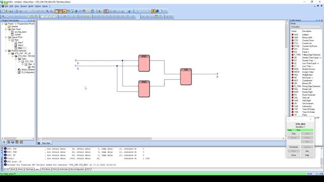В видео представлена последовательность выполнения лабораторных работ "Построение функциональных блоковых диаграмм для логических выражений" и "Двухточечное управление освещением", связанных с реализацией логических операций, подробное описание которых представлено в учебном пособии: Смарт-технологии : логические задачи на языке функциональных блоковых диаграмм : практикум / Н.А. Седова, В.А. Седов, Е.В. Кийкова ; Владивостокский государственный университет экономики и сервиса ; Электрон. текст. дан. (1 файл: 11,2 МБ). – Владивосток: Изд-во ВГУЭС, 2018. https://portfolio.vvsu.ru/schoolbook/details/tid/10495/idm/2145176752/ Цель лабораторных работ: научиться реализовывать в среде программирования PC WorX v.6.30 выражения с логическими операциями, а также использовать логические операции для решения текстовых задач. Студенты, изучившие текущее видео, научатся разрабатывать приложения на языке программирования Function Block Diagram, использующие программные блоки логических операций. Видео также опубликовано на Яндекс.Дзен канале "Самостоятельная работа": https://zen.yandex.ru/independent_work/