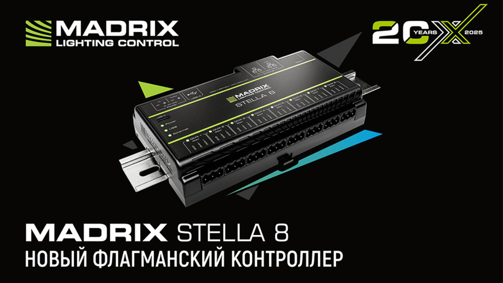 Представляем Madrix Stella 8 – новый восьмипортовый флагманский контроллер с поддержкой RDM для профессионального управления DMX-системами. Он объединил в себе передовые технологии и 20-летний опыт разработок компании Madrix, чтобы предоставить пользователям максимально эффективные инструменты для управления освещением. Основные преимущества: - Многофункциональность: контроллер, усилитель и разветвитель DMX в одном устройстве. - Простота настройки: встроенные предустановки и режим с 32 источниками данных. - Гибкость: поддержка ArtNet, ACN, функция моментальных снимков. - Надежность: управление приоритетами, стратегии резервного копирования. - Система слияния DMX-потоков в реальном времени. - Мониторинг и управление через RDM. - Интеграция с Madrix Radar для автоматического мониторинга состояния оборудования. - Удобство подключения: 8 портов DMX, 2 порта питания, 2 порта Gigabit Ethernet (один с поддержкой PoE). - Интуитивный веб-интерфейс на нескольких языках. - Диагностика и проверка данных DMX в реальном времени. - Высокое качество и надежность: производство в Германии, 5-летняя гарантия. Madrix Stella 8 – ваш ключ к новому уровню управления освещением!