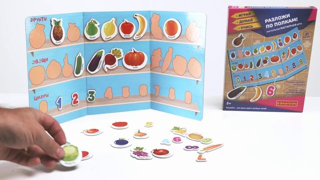 Настольные магнитные игры "Мой распорядок дня", "Разложи по полкам!" и "Наша планета" будут хорошим подспорьем детям и их родителям в процессе изучения ребёнком времени, цифр, цветов, основных видов фруктов и овощей и основ географии. Игры развивают воображение, память, мышление, моторику, пространственную ориентацию и грамотность.