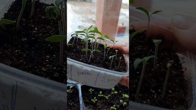 Рассаживаю рассаду по стаканам