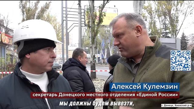 Алексей Кулемзин проверил ход ремонтных работ в Киевском районе Донецка