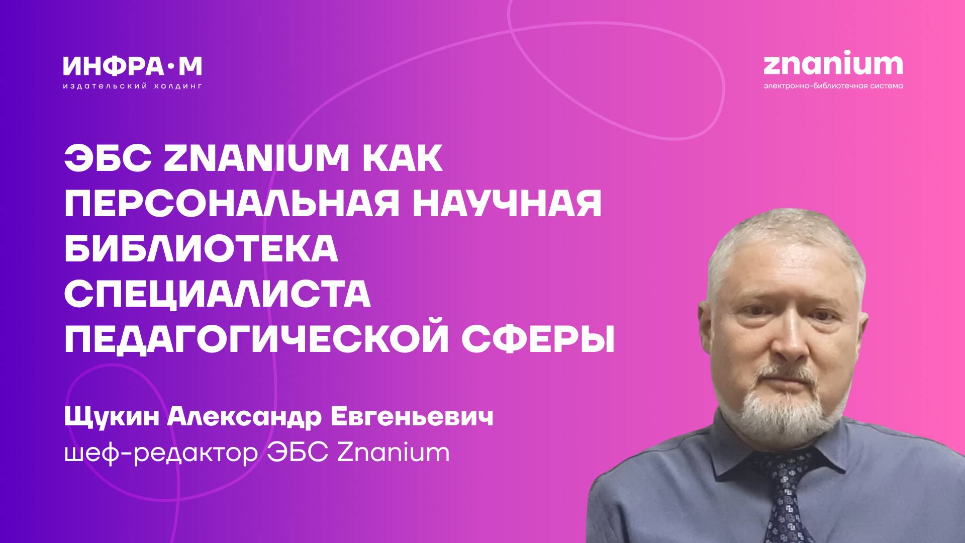 👨🏼💻 Спикер: Щукин Александр Евгеньевич, шеф-редактор ЭБС Znanium 💡 Мы расскажем о преимуществах использования фондов ЭБС Znanium для научно-исследовательской деятельности, о формировании и настройке своей персональной научной библиотеки, и использовании сервисов платформы ZNANIUM при работе над собственной публикацией. На вебинаре будут рассмотрены следующие темы: 🔹 структура и организация научных ресурсов ЭБС Znanium; 🔹 настройка персональной научной библиотеки на платформе ZNANIUM; 🔹 базовые сервисы поддержки научно-исследовательских потребностей преподавателя; 🔹 траектории поиска научной литературы. 🎬 Смотрите другие наши вебинары ⇢ https://www.youtube.com/playlist?list=PLi2KS7pzBHJVRV.. 🖥 Библиотека электронной литературы ⇢ https://znanium.com/ 📚 Магазин печатных книг ⇢ https://infra-m.ru/ ✅ Подписывайся на наши соцсети и будь в курсе всех новостей и обновлений: Мы в VK ⇢ https://vk.com/inframgroup YouTube ⇢ https://www.youtube.com/@ebs_znanium Telegram-канал ⇢ https://t.me/infra_znanium Мы в Одноклассниках ⇢ https://ok.ru/profile/586134824940