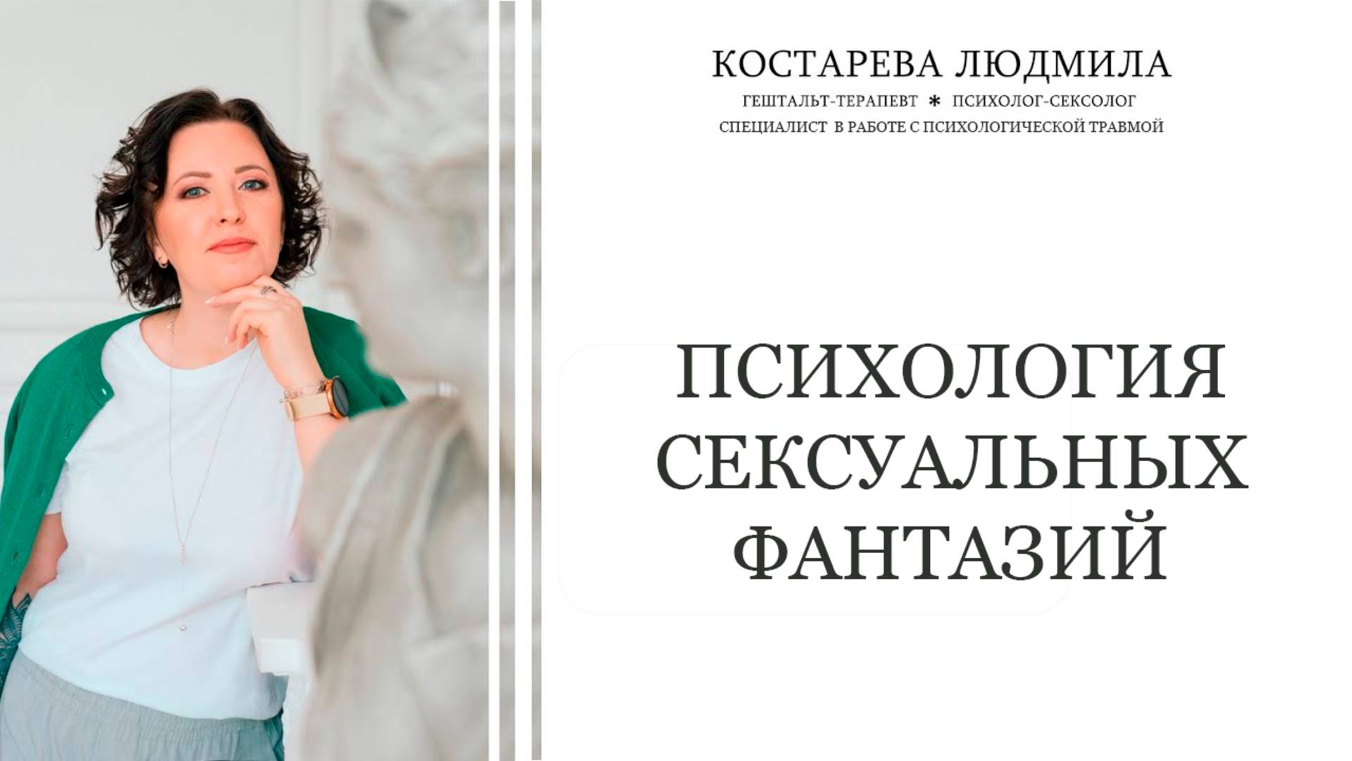 Провела прямой эфир на канале Психология | Канал о жизни. Проект от образовательного центра «Каменный город». Рассказываю о том, где проходит грань между нормой и патологией в сексуальных фантазиях; что могут скрывать сексуальные фантазии, рекомендации как говорить о фантазиях с партнером. Тест для женщин, которые хотят узнать почему у них секс про “надо”, а не “хочу” : https://t.me/kostareva_ludmila_bot Cайт: https://kostareval.ru/ Tg-канал: https://t.me/sexolog_kostareva