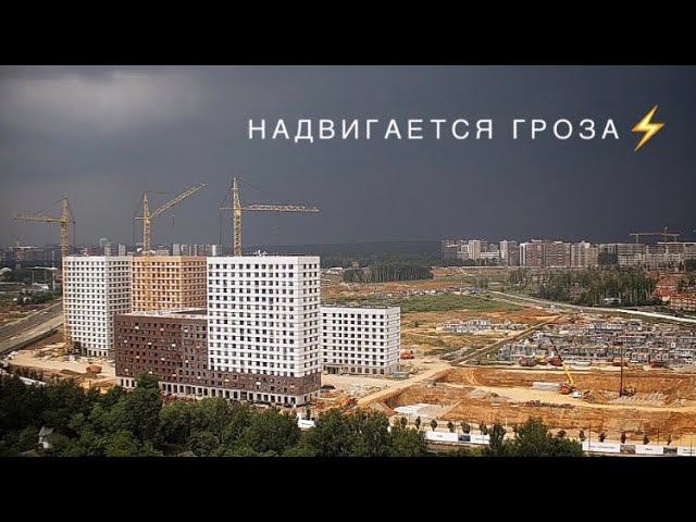 Надвигается гроза! Стройка. Башенные краны КБСМ503Б. Упал кран в Подмосковье...