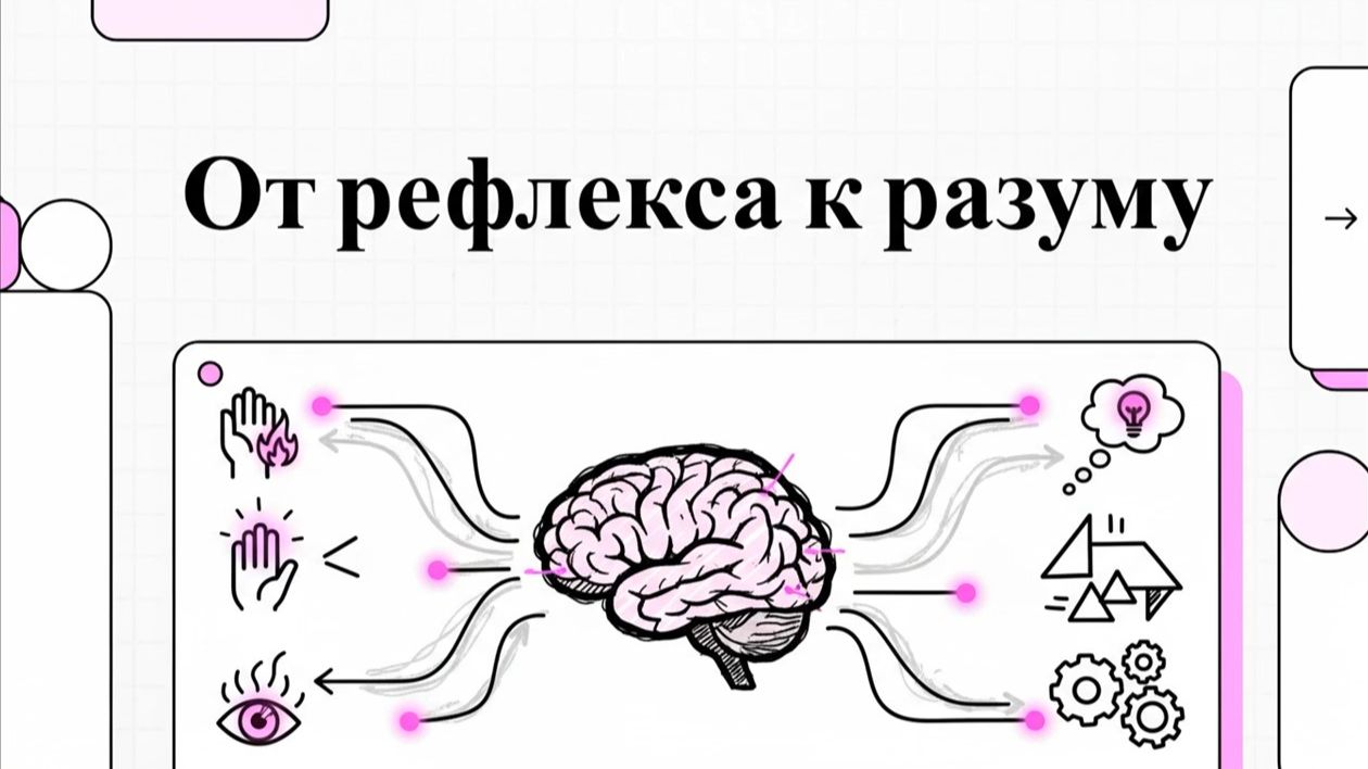 По материалам монографии Рефлексы (fornit.ru/68661). Теоретический анализ механизмов адаптации, где ориентировочный рефлекс рассматривается как переходное звено между жесткими биологическими программами и осознанным поведением. Критикуется современное академическое сообщество за поверхностную трактовку условных рефлексов, подчеркивая качественное различие между наследственными инстинктами, такими как импринтинг, и высокоуровневыми психическими процессами вроде эмпатии и зеркальных нейронов. Ключевая идея заключается в том, что мозг выделяет наиболее актуальный стимул через математически элегантное дерево распознавания, где сила новизны определяется глубиной активации иерархических узлов. Это вычисление значимой новизны позволяет сознанию удерживать фокус внимания, приостанавливать привычные реакции и формировать произвольные автоматизмы, которые служат более гибкой альтернативой базовым рефлексам. Описывается эволюционный переход к психике как системе интеллектуального контроля, способную перекрывать низкоуровневую деятельность ради более эффективного выживания.