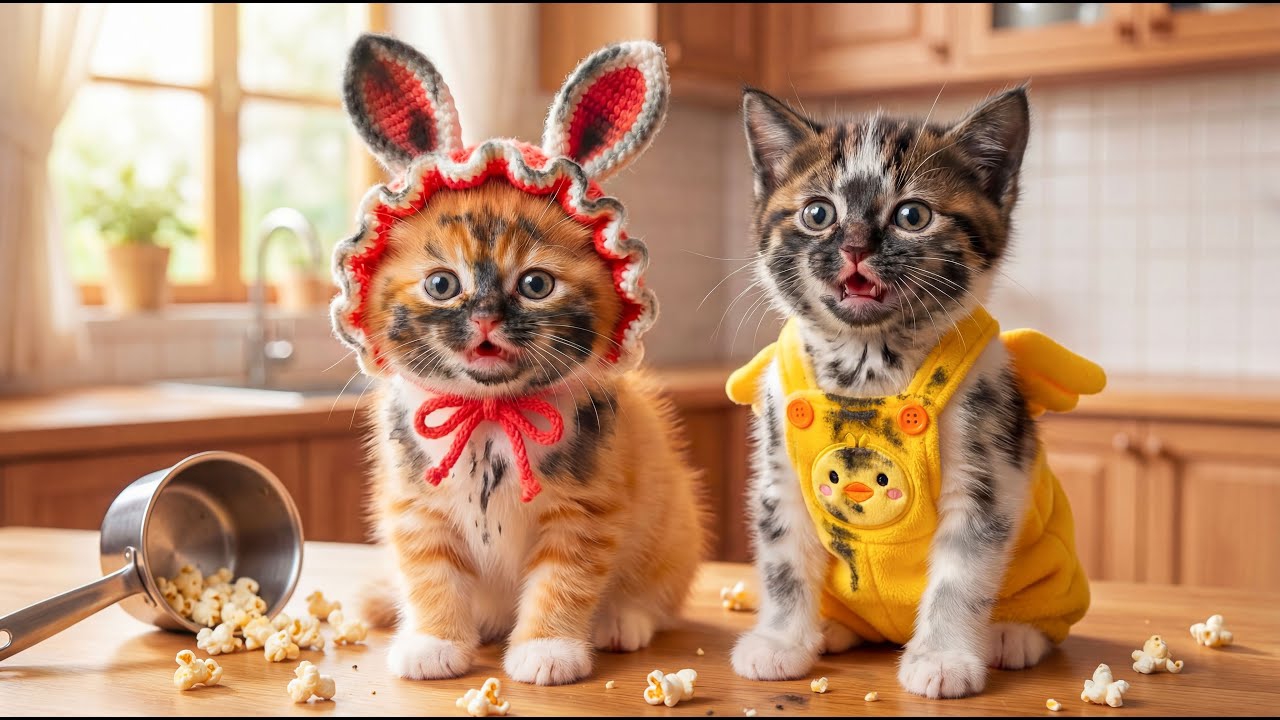 Мультики для детей, котики делают попкорн, видео про котиков, мультики
