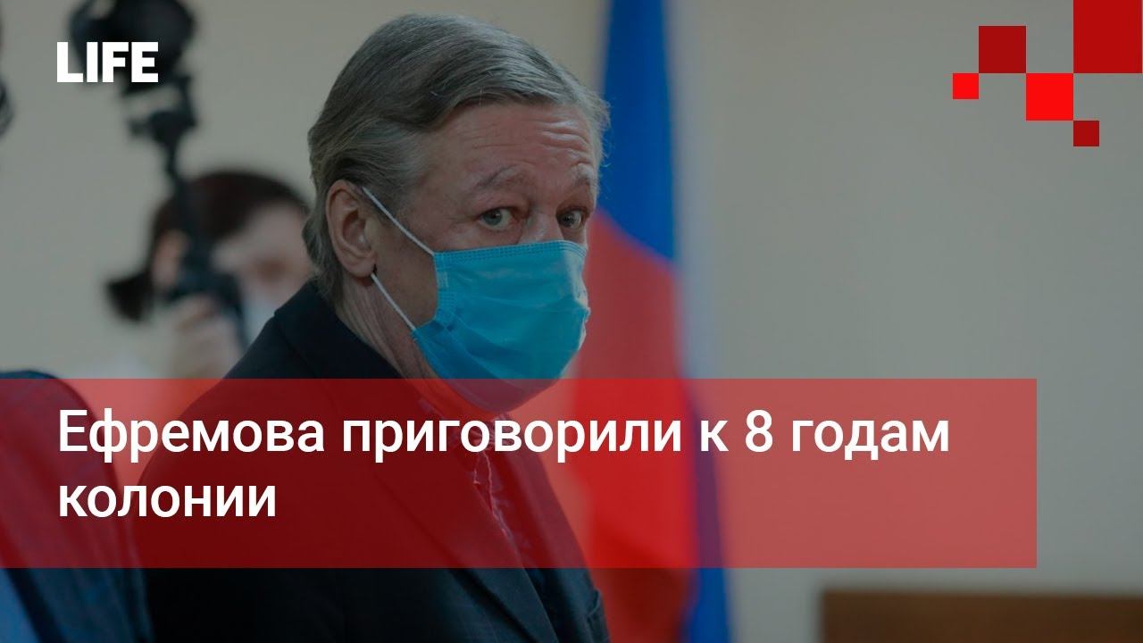 Михаила Ефремова приговорили к 8 годам колонии общего режима. Суд признал актёра виновным в смертельном ДТП. Актёру зачли в наказание время, проведенное под домашним арестом. Потерпевшие не будут обжаловать приговор. Артист обязан выплатить 800 тысяч рублей компенсации старшему сыну погибшего в ДТП. Подробнее: https://t-do.ru/Lshot Подпишитесь на канал Life | Новости - https://goo.gl/7MElrH Смотрите также: Viber - https://viber.com/lifenewsru Телеграм— https://t-do.ru/Lshot ICQ - https://icq.com/chat/AoLEmf1sCS3TP_VTVRU Официальный сайт http://Life.ru/ ➤Life в Vk - https://vk.com/life ➤Life в Twitter - https://twitter.com/lifenews_ru ➤Life в OK.ru - https://ok.ru/lifenews ➤Life в Facebook - https://www.facebook.com/lifenews.ru Life – первый по срочным новостям! Эксклюзивные видео по самым главным темам дня, прямые включения с мест событий, топовые ньюсмейкеры в студии – главные особенности Life