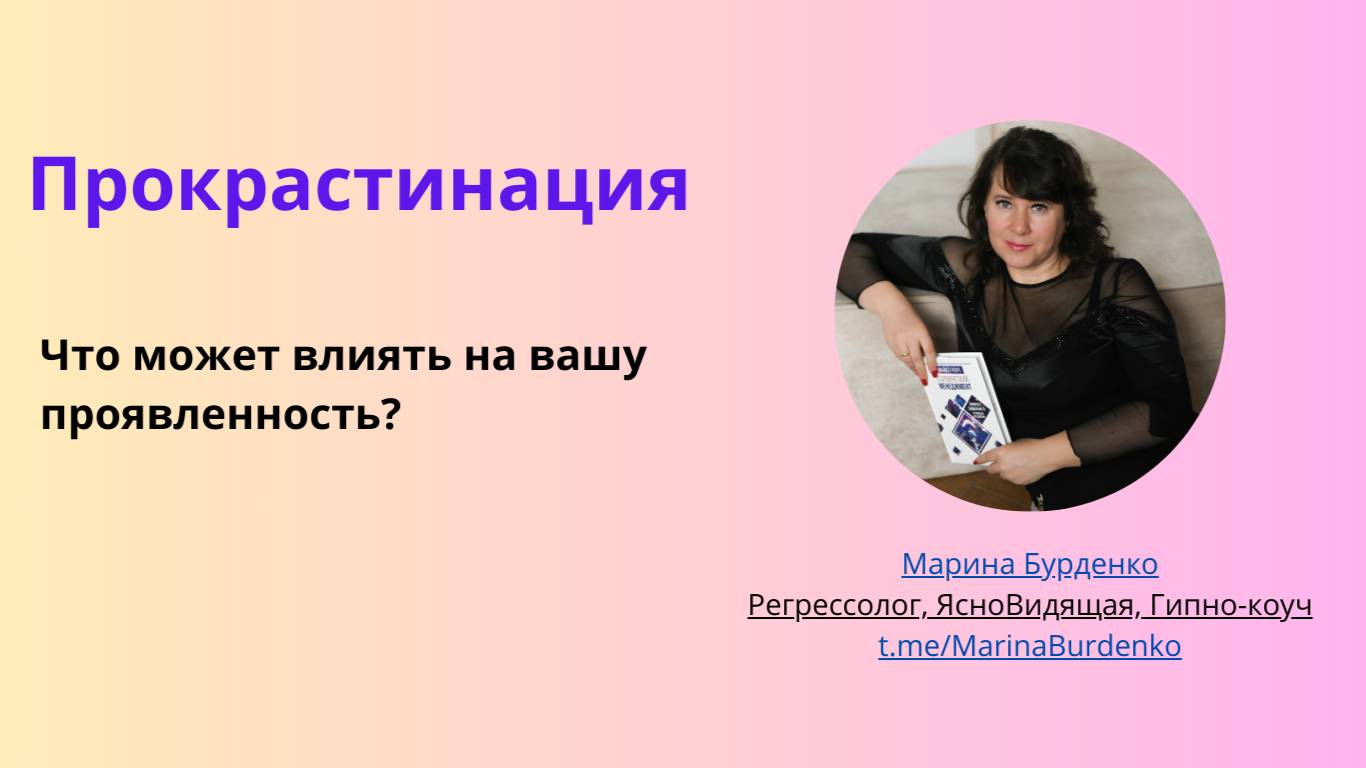 Что может влиять на вашу проявленность? Какие родительские запреты могут вызвать прокрастинацию? И как это создает вам финансовые потолки? Такие мои проработки помогают выйти в проявленность и увеличить доход - работа в прямом эфире. Марина Бурденко | Энергия и деньги t.me/MarinaBurdenko