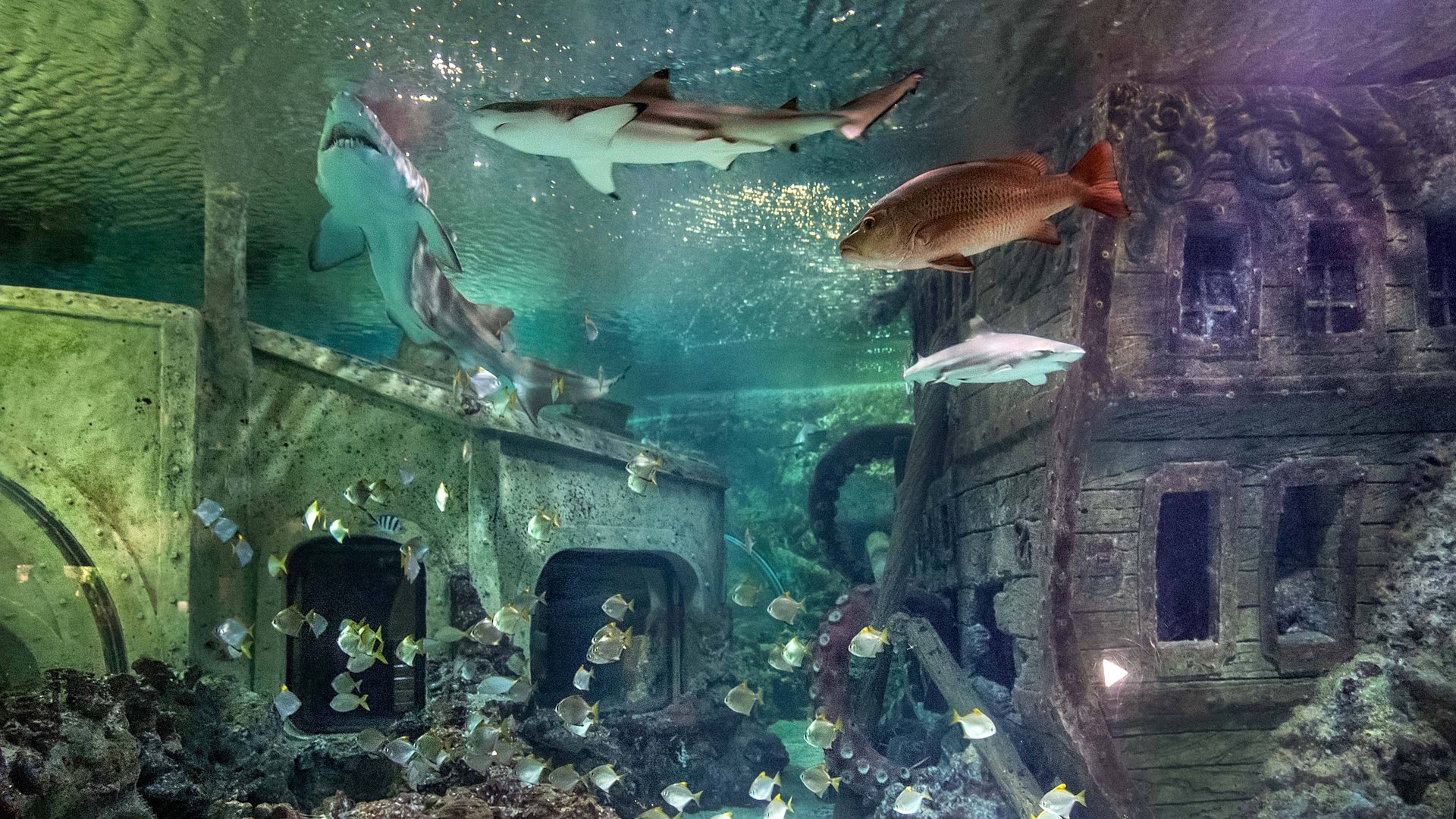 Гордость Воронежского океанариума – огромный бассейн со смотровыми окнами и двумя туннелями, в котором собрано множество представителей тропических океанских вод. Декорации гигантского аквариума выполнены в виде затонувшего корабля, обвитого щупальцами осьминога. В видео использована музыка: World Traveler - DimmySad