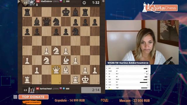 Титульный вторник на chess.com 11 туров 3+1 Поддержать канал: https://www.donationalerts.com/r/karinachess1 Подписаться на мой канал: https://www.youtube.com/channel/UChor8u_hhgrjX2lt0QLzZHA?sub_confirmation=1 Стать спонсором канала: https://www.youtube.com/channel/UChor8u_hhgrjX2lt0QLzZHA/join Обучающий курс "Пешечные структуры" http://bit.do/pawns-structures Рестрим: https://www.twitch.tv/karinachess1 Рада приветствовать Вас на канале женского международного гроссмейстера, международного мастера Карины Амбарцумовой! Я - профессиональная шахматистка и тренер. Здесь вы сможете найти обучающие видеоуроки по шахматам, комментарии турниров, стримы моей игры в блиц шахматы. Подписывайтесь на мои странички в соц.сетях: ВКонтакте: https://vk.com/karinachessclub Twitch: https://www.twitch.tv/karinachess1 Почта для связи: karinachess@mail.ru Поддержать канал: https://www.donationalerts.com/r/karinachess1 Мой сайт: http://chesscoach.ru/