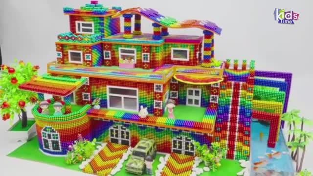 Магнитные шарики - Трехэтажный Современный Особняк С Волнистой Крышей, Гаражом И Прудом