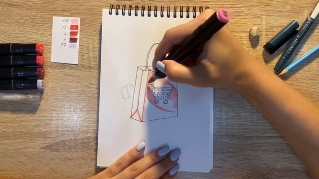 Как нарисовать покупки карандашом и скетч маркерами | Рисунок для детей, поэтапно и легко